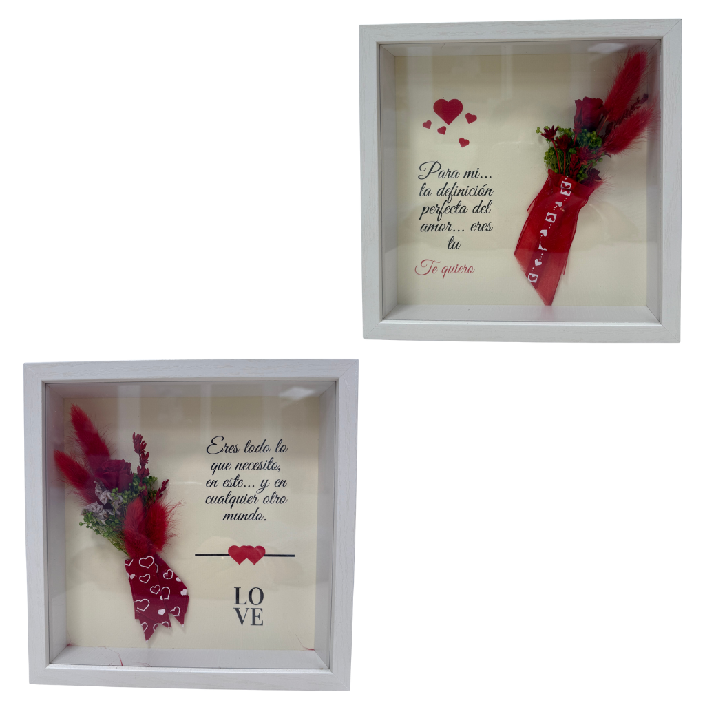Este cuadro artesanal está realizado en madera natural y decorado con un delicado ramillete de flores secas y preservadas, cuidadosamente seleccionado para mantener su belleza y textura con el paso del tiempo. La rosa, protagonista de la composición, aporta un toque de elegancia y simbolismo, convirtiendo cada pieza en un elemento decorativo lleno de sensibilidad.