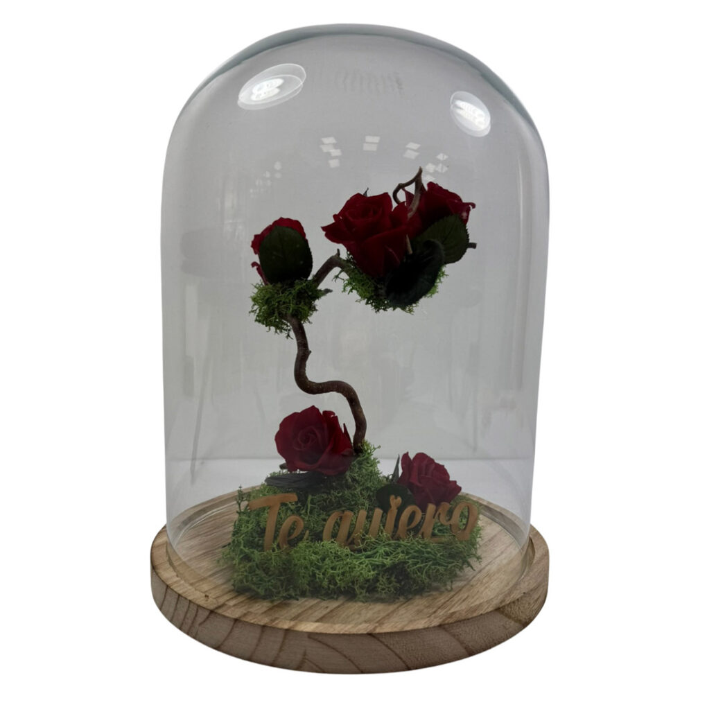 La luz que atraviesa la cúpula resalta la intensidad de las rosas rojas, convirtiéndolas en el centro de atención de cualquier espacio. Perfecta como regalo de San Valentín, para decorar el hogar o la oficina, esta pieza atemporal transmite amor, sofisticación y un toque de magia que perdura en el tiempo.